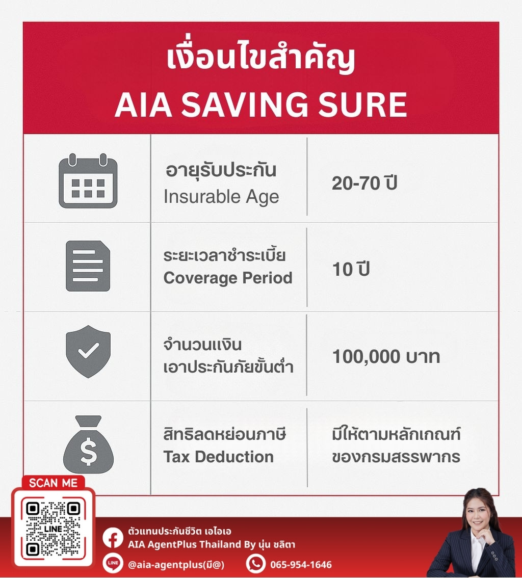 เงื่อนไขสำคัญ ใน แผน AIA Saving Sure