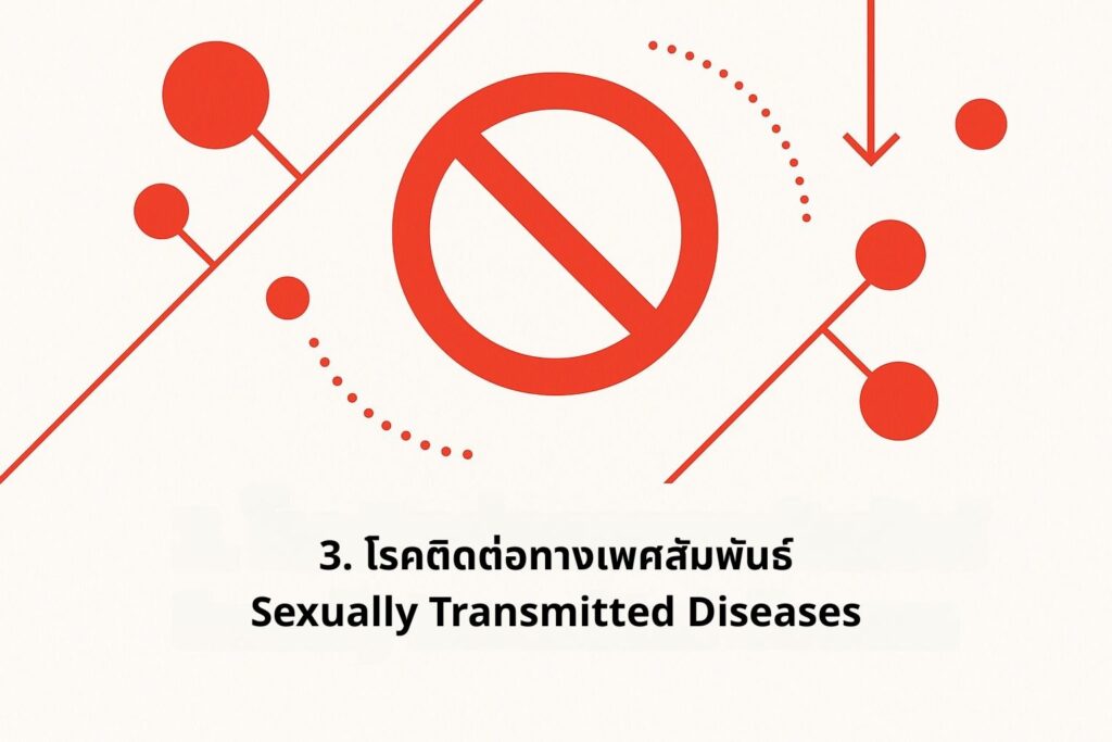 โรคที่เกิดจากการติดต่อทางเพศสัมพันธ์ เช่น โรคเอดส์ (HIV/AIDS) ซิฟิลิส หนองใน หรือหนองในเทียม ซึ่งจัดเป็นโรคที่มีสาเหตุจากพฤติกรรมส่วนบุคคลและสามารถป้องกันได้ ประกันสุขภาพจึงมักไม่ครอบคลุมความเสียหายที่เกิดจากโรคเหล่านี้ ยกเว้นในบางกรณีที่มีการติดเชื้อจากสาเหตุอื่น เช่น การรับเลือด หรืออุบัติเหตุจากการทำงานในสถานพยาบาล