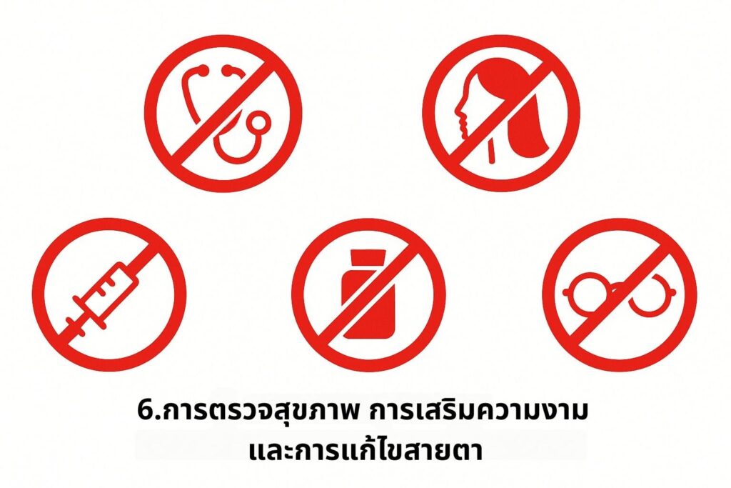 6.การตรวจสุขภาพ การเสริมความงาม การแก้ไขสายตา หรือการรักษาที่ไม่ใช่การแพทย์