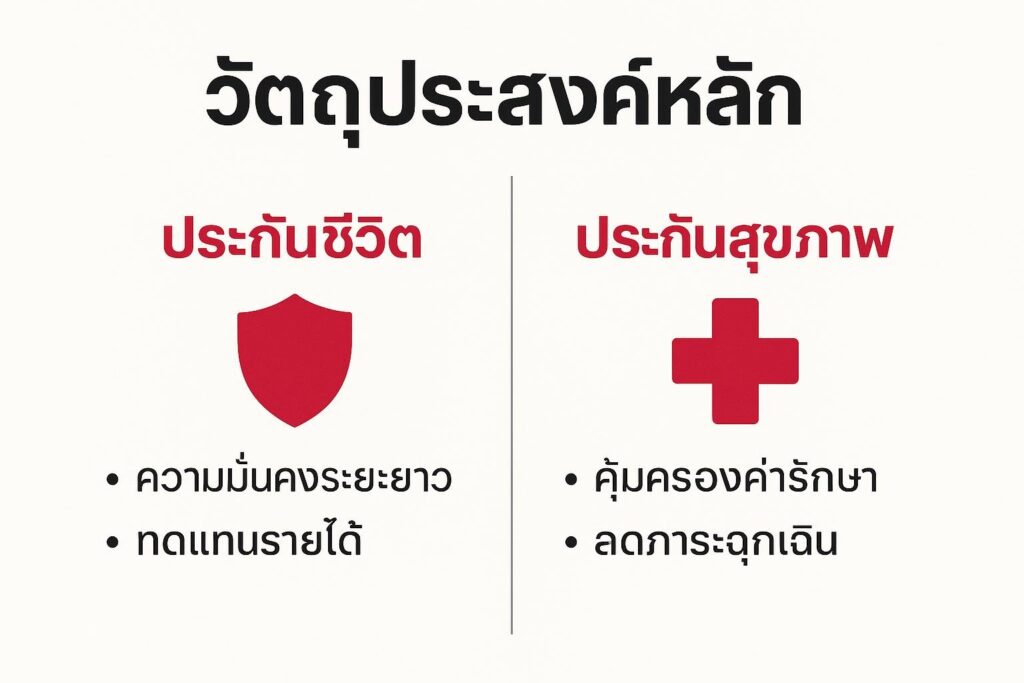 1. เปรียบเทียบประกันชีวิต และประกันสุขภาพ: วัตถุประสงค์หลักของความคุ้มครอง