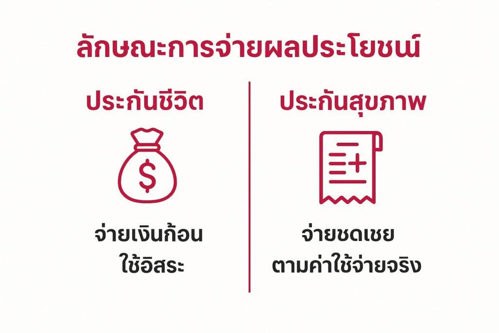2. เปรียบเทียบประกันชีวิต และประกันสุขภาพ: ลักษณะการจ่ายผลประโยชน์