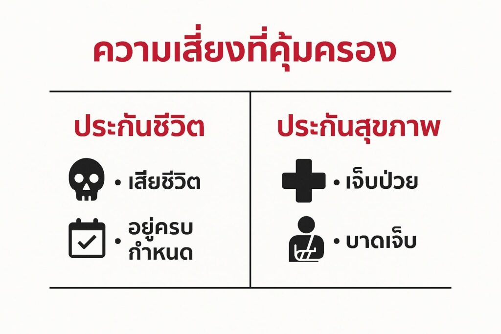3. เปรียบเทียบประกันชีวิต และประกันสุขภาพ: ความเสี่ยงที่ให้การคุ้มครอง