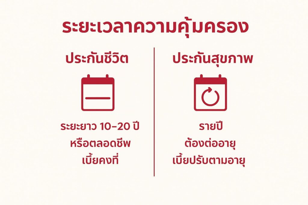 4. เปรียบเทียบประกันชีวิต และประกันสุขภาพ: ระยะเวลาความคุ้มครอง