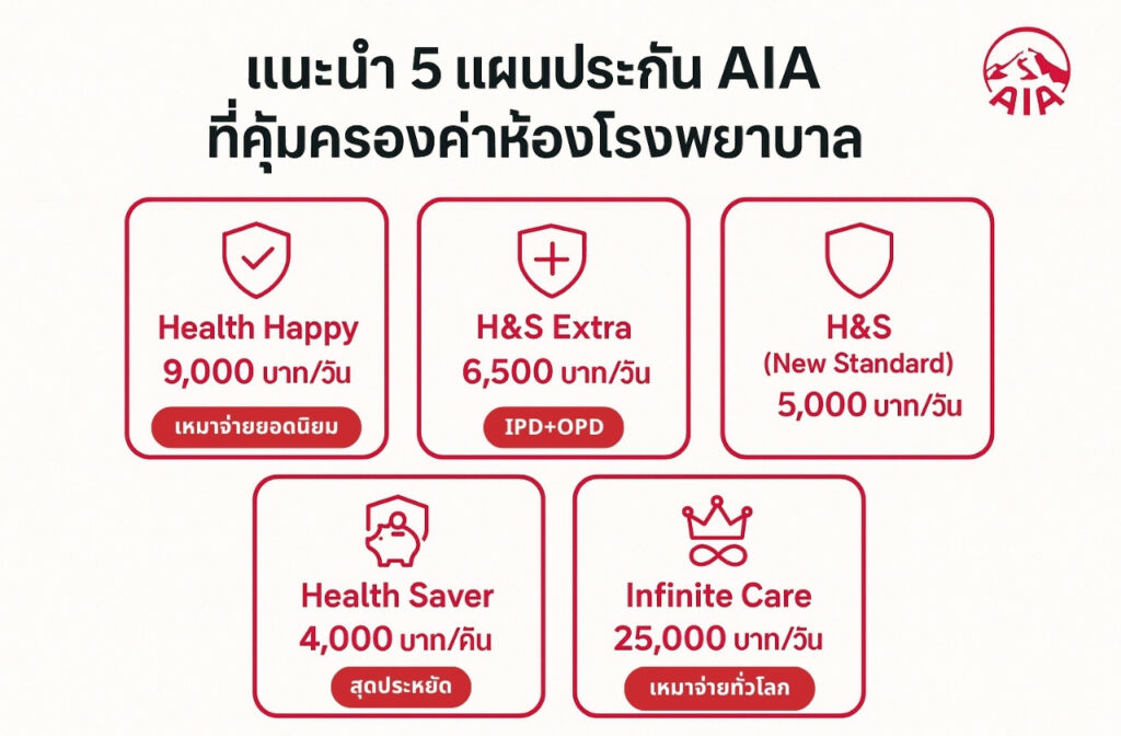 แนะนำ 5 แผนประกัน AIA ที่มีคุ้มครองค่าห้อง