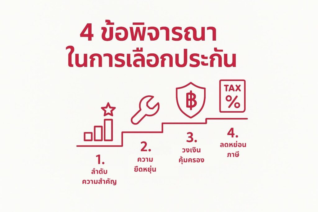 เนื่องจากฟรีแลนซ์ต้องออกแบบสวัสดิการของตนเองทั้งหมด การพิจารณาอย่างรอบคอบในการเลือกแผนประกันจึงเป็นสิ่งสำคัญ โดยมี 4 ข้อที่ควรคำนึงถึง ดังนี้