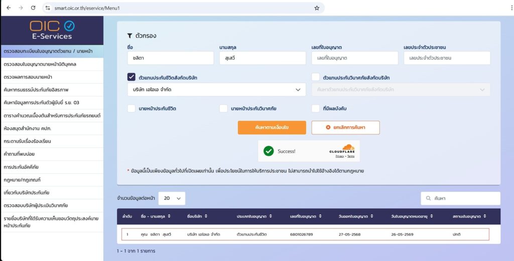ตรวจสอบทะเบียนใบอนุญาตตัวแทน